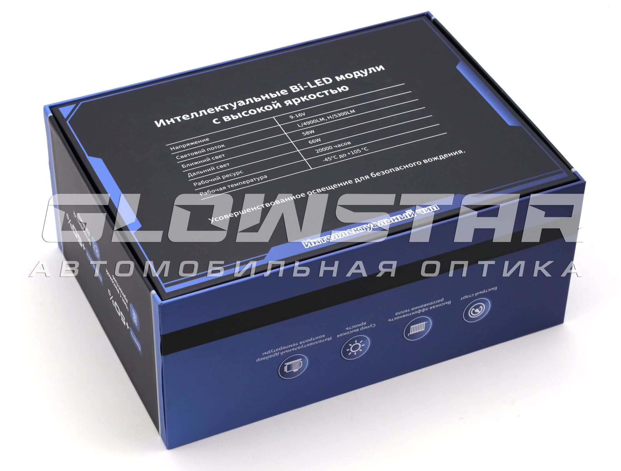 Модель обладает классической геометрией светораспределения. Имеет прозрачную линзу. Два современных светодиодных чипа и два отражающих рефлектора. В модели присутствует как ближний, так и дальний режим света. По классической схеме запуск дальнего света задействован при помощи шторки с электромагнитом. При подаче питания на провода электромагнита запускается дальний свет. Обычно его подключают от плюса и минуса лампы дальнего света.