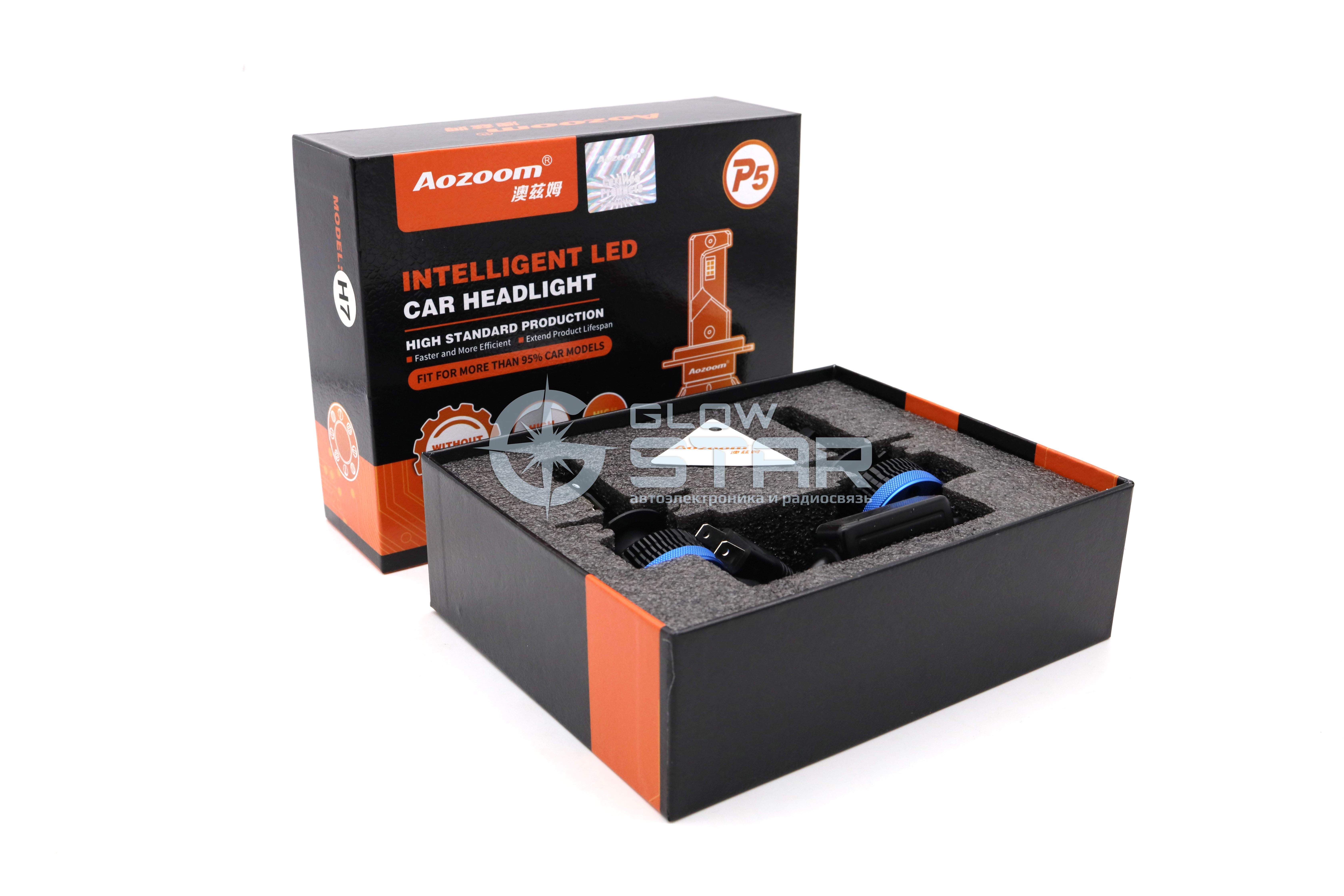 Светодиодные лампы H7 Aozoom P5 с радиатором, 12V, 35W, 6000K, чип Korea WT35