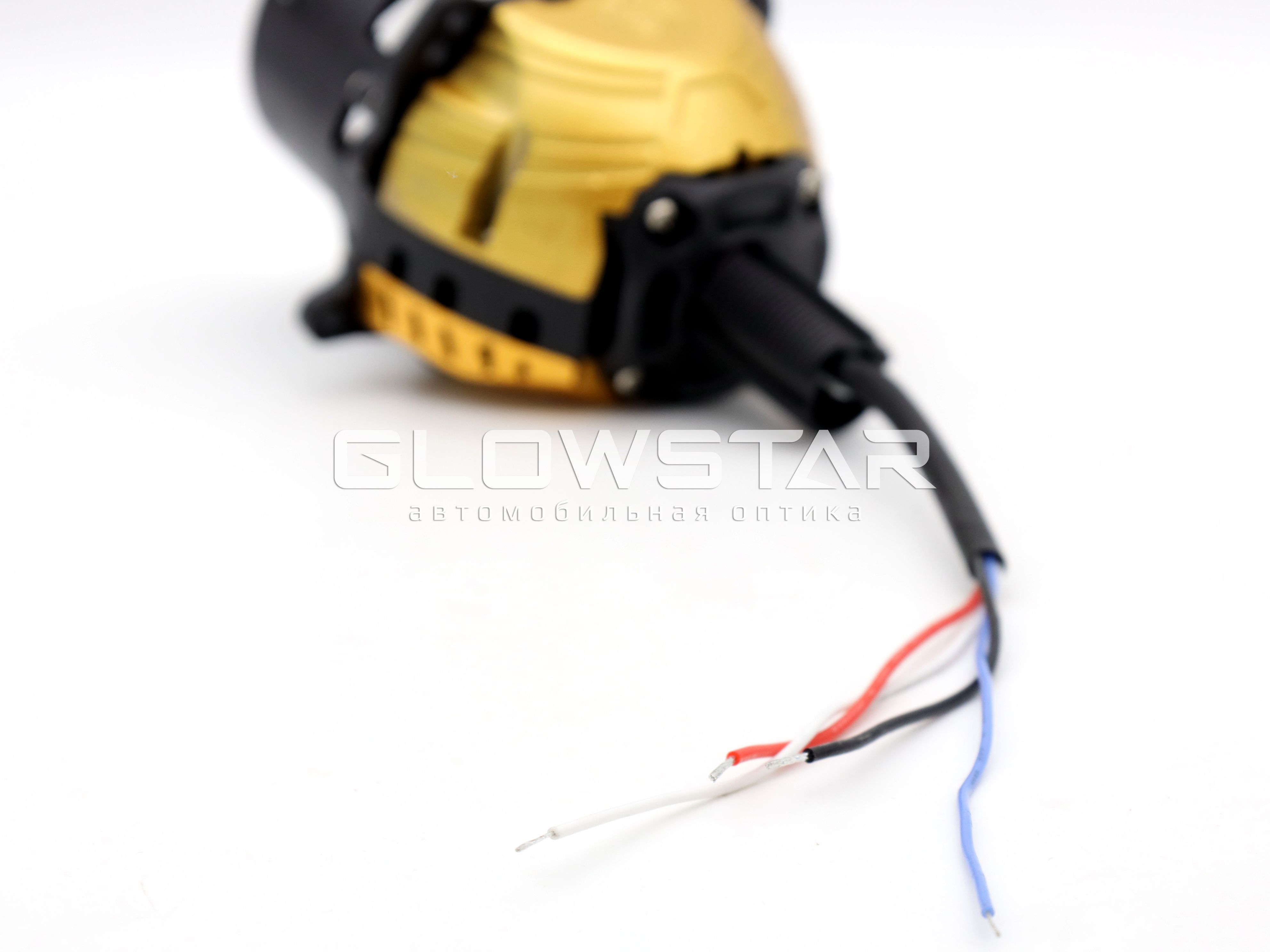 - Белый провод - плюс, синий провод - минус (дальний свет - шторка)