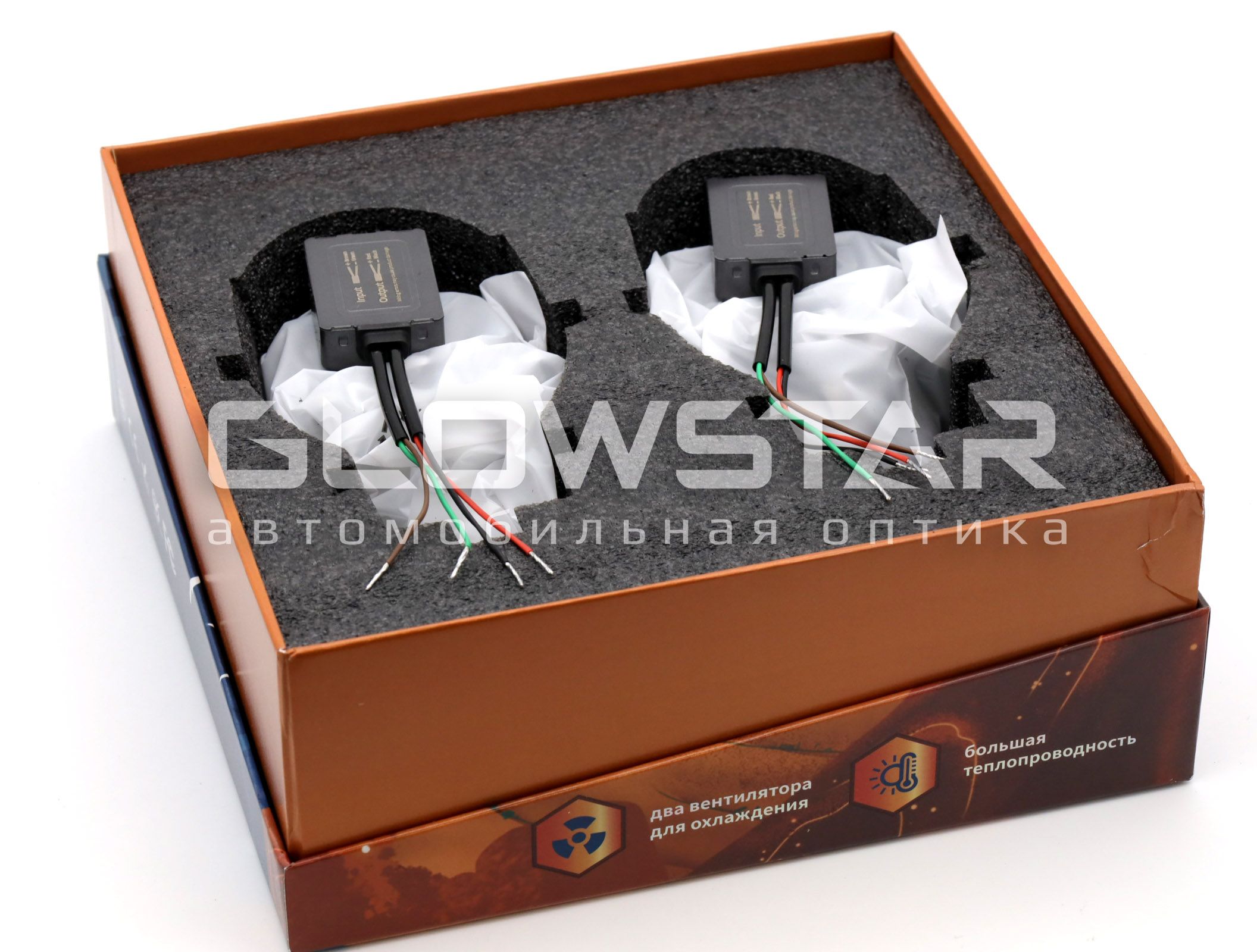 Модель с необычным дизайном. Прямоугольная основная линза и 2 дополнительные мини линзы. 2 кулера охлеждения. Второй кулер запускается при включении дальнего света.