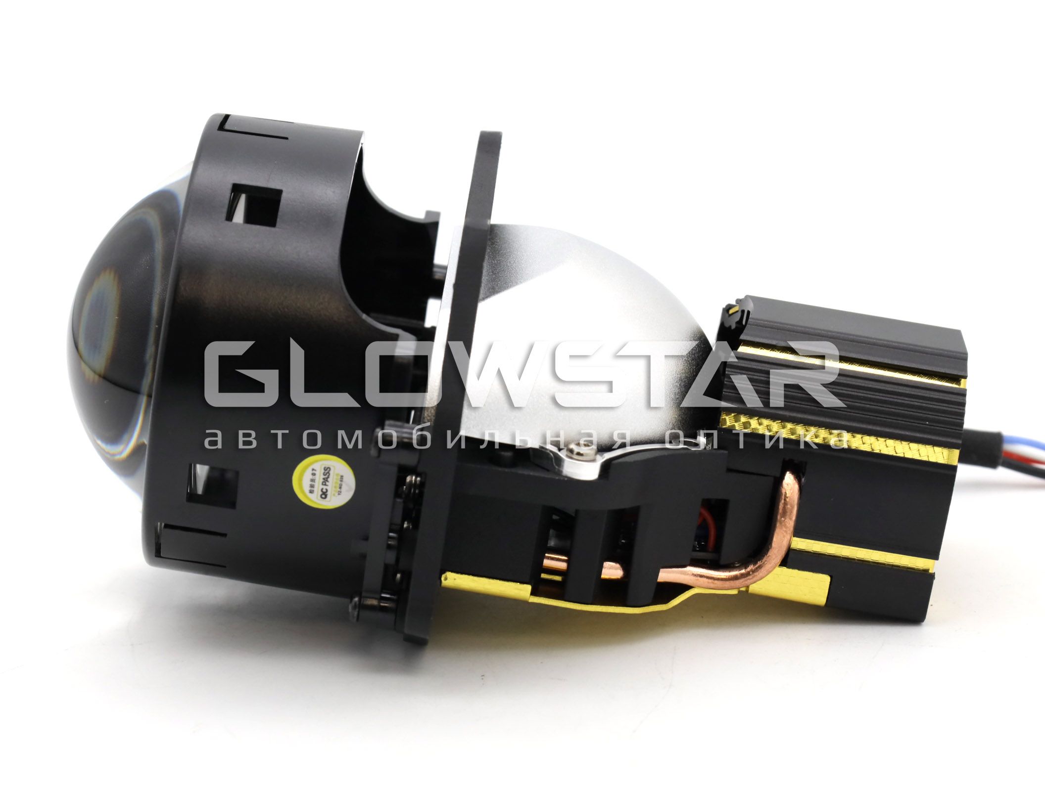 Двухчиповая модель. 4 провода подключения. Оба чипа работают и в режиме ближнего света и в режиме дальнего света при открытии шторки.