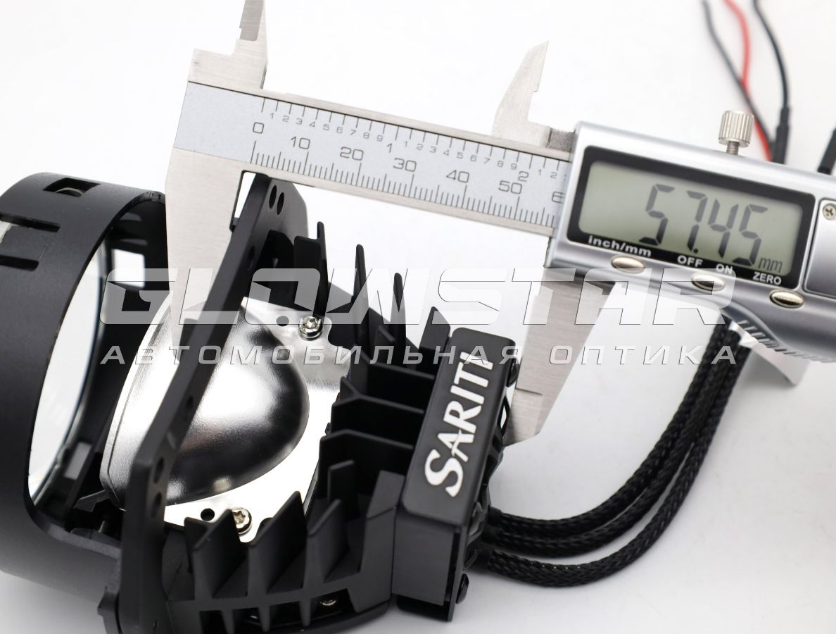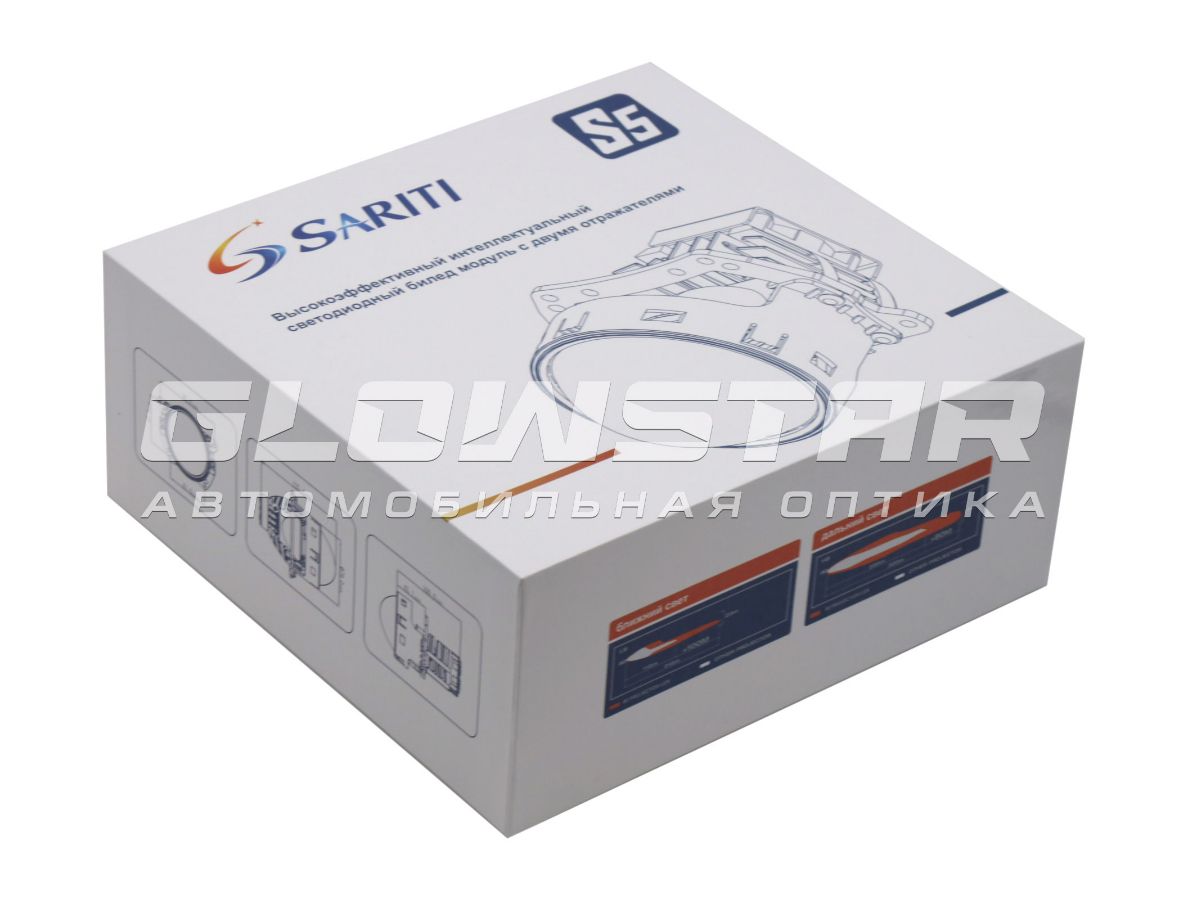 Билед модули Sariti S5, 3.0 дюйма. Дочерний бренд корпорации Aozoom. Cпециальная версия — выпускаемая подразделением торговой марки Aozoom. Два режима - ближний/дальний. Встроенный драйвер. Не смотря на относительно не высокое энергопотребление модель выдает очень плотный равномерный световой поток и в режиме ближнего и в режиме дальнего света. Модель имеет компактные размеры.