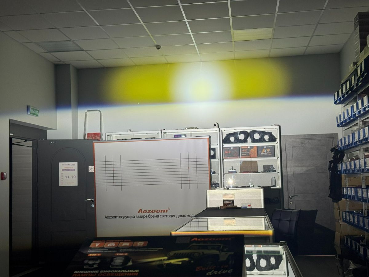 В режиме ближнего света четкая СТГ без ступеньки. Режим дальнего света узким пучком желтого цвета, может работать как совместно с ближним так и отдельно.